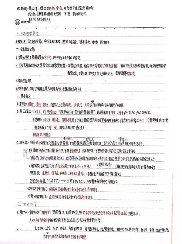 财政与税务学院大一学生丁赫廷同学的笔记,乍一看,还以为是用Word文档打印出来的,只能说学霸笔记如此认真、细致,真是常人所不能及的。