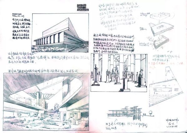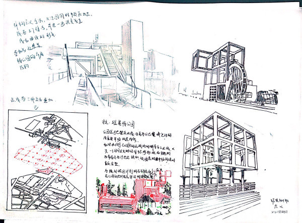 艺术设计学院学生芮欢说:“其实这些图片都是临摹的,有一些是大师手稿,有些是大师的建筑的成品,旁边的字就是自己的一些问题和感想。”记笔记是芮欢从小就养成的习惯,在她看来,通过做笔记的过程,可以将他人的智慧转化为自己的。