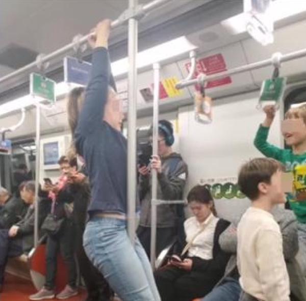 熊孩子地铁玩“吊环”使劲晃,上海地铁:请遵守规则