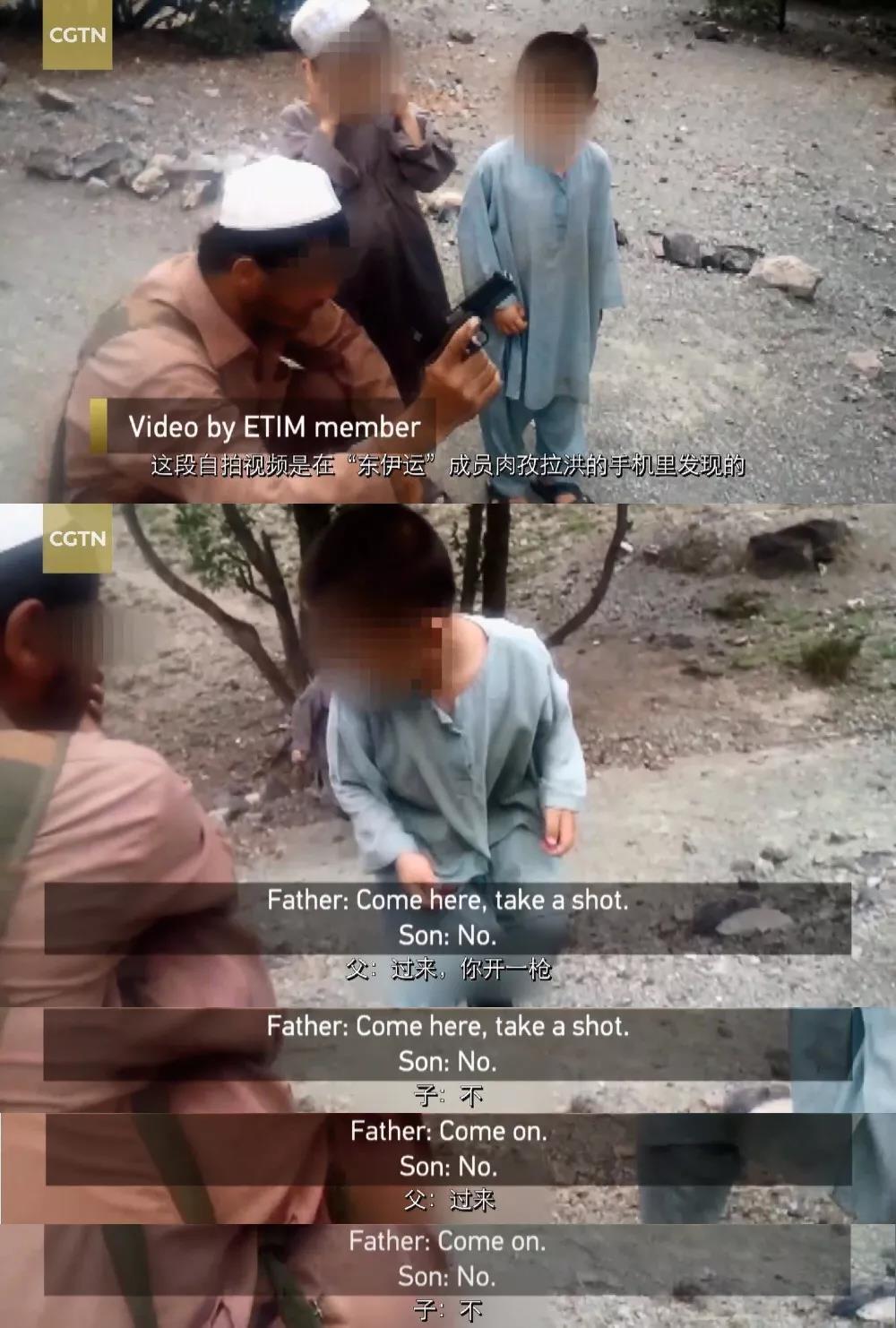 在一段“东伊运”成员拍摄视频里,一个年仅6岁的小男孩被自己的父亲要求学习开枪。