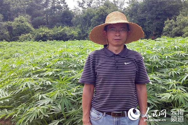 杨明在工业大麻试验基地。(云南省农业科学院供图)
