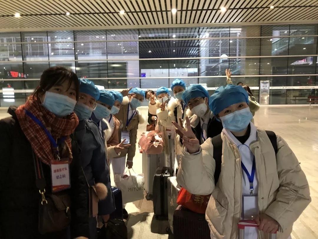 参加第一批湖南援鄂医疗队的12位衡阳市中医医院队员,左一为梁志敏