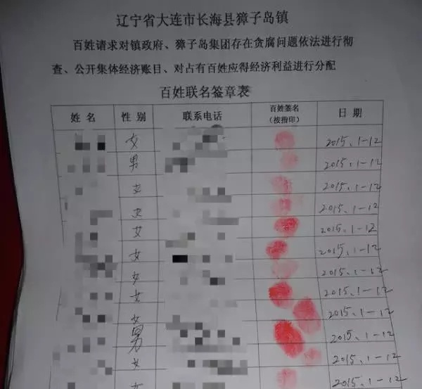 獐子岛岛民联名举报签字,这样的签字表共有百余张