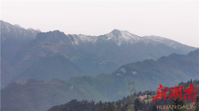 “湖南屋脊”群峰高耸,山巅的积雪还未消融,山下却生机盎然。