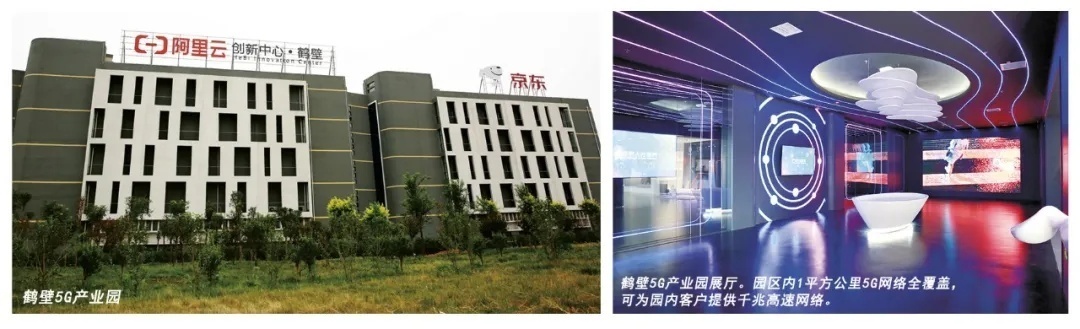 △左图:鹤壁5G产业园;右图:鹤壁5G产业园展厅。园区内1平方公里5G网络全覆盖,可为园内客户提供千兆高速网络。