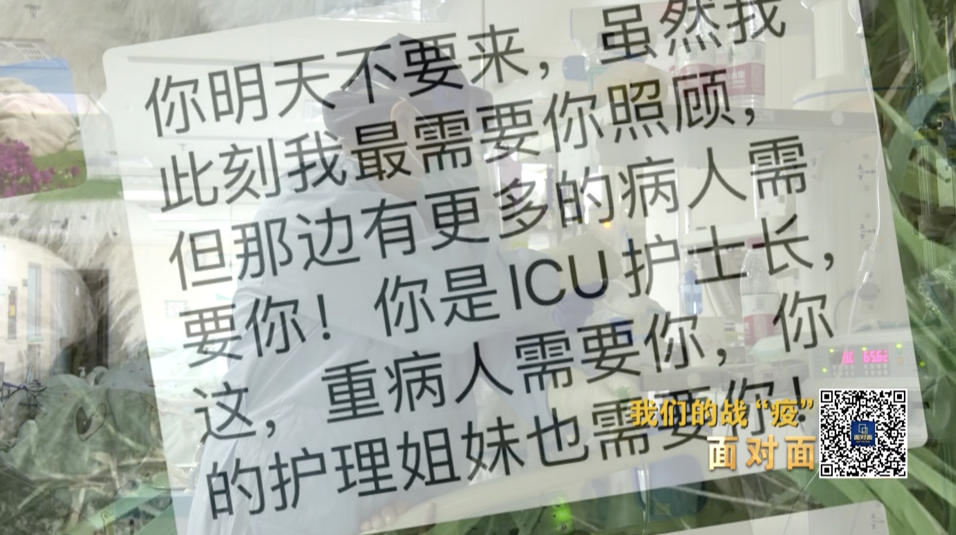 “你们这一生,早就将我第一天踏入大学校园,步入临床专业时所许诺的誓言,烙印在了本能之中—健康所系,性命相托。而我最亲爱的老爸,我不知道你是否有多余的精力看到这句话,但我真的真的很想你,想见你一面,你一定要好起来,让我能够在你面前亲口说一句:爸,我爱你。”