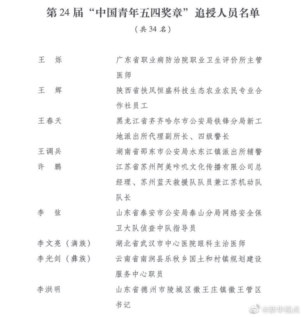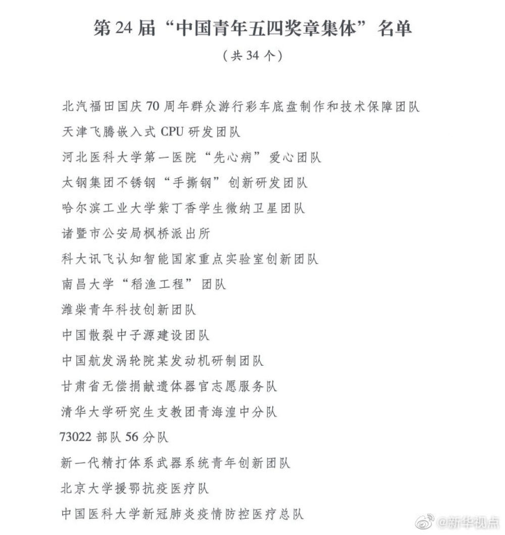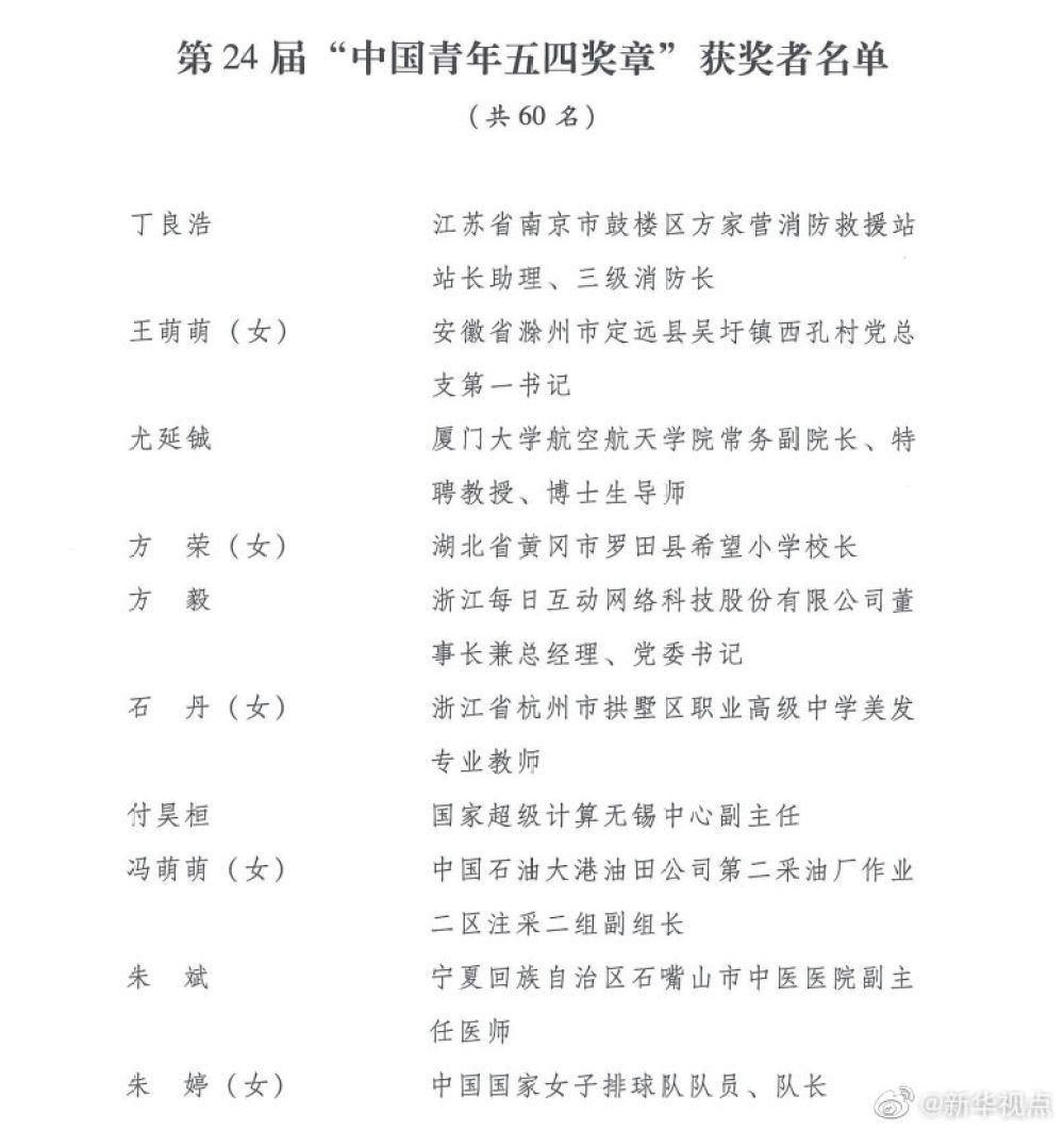 第24届中国青年五四奖章评选结果揭晓(附名单)