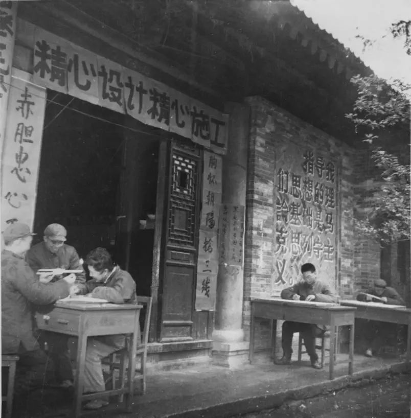 1970年初,材料工艺研究所(中国航天科技集团有限公司43所前身)科研人员,正在陕西省西安市蓝田县水陆庵古庙里进行型号设计。