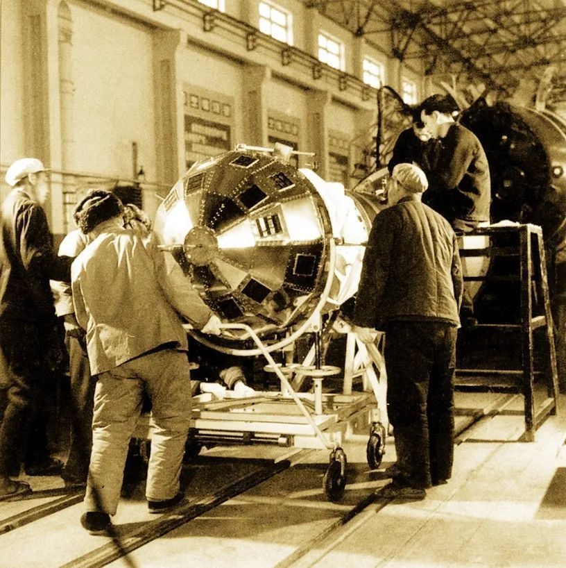 研究所装配人员在装配“东方红乐音装置”。1965年,东方红一号卫星研制重启,代号“651工程”。当年10月,召集一个全国性的方案论证会议,经过42天讨论,最终确定了“东方红一号”的基本方案,要求只有12个字:上得去,抓得住,听得着,看得见。