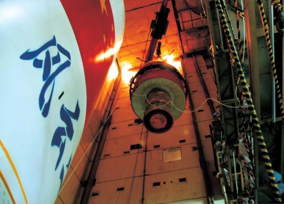 2003年5月15日,中国运载火箭技术研究院工作人员在火箭总装现场对发动机进行调试。