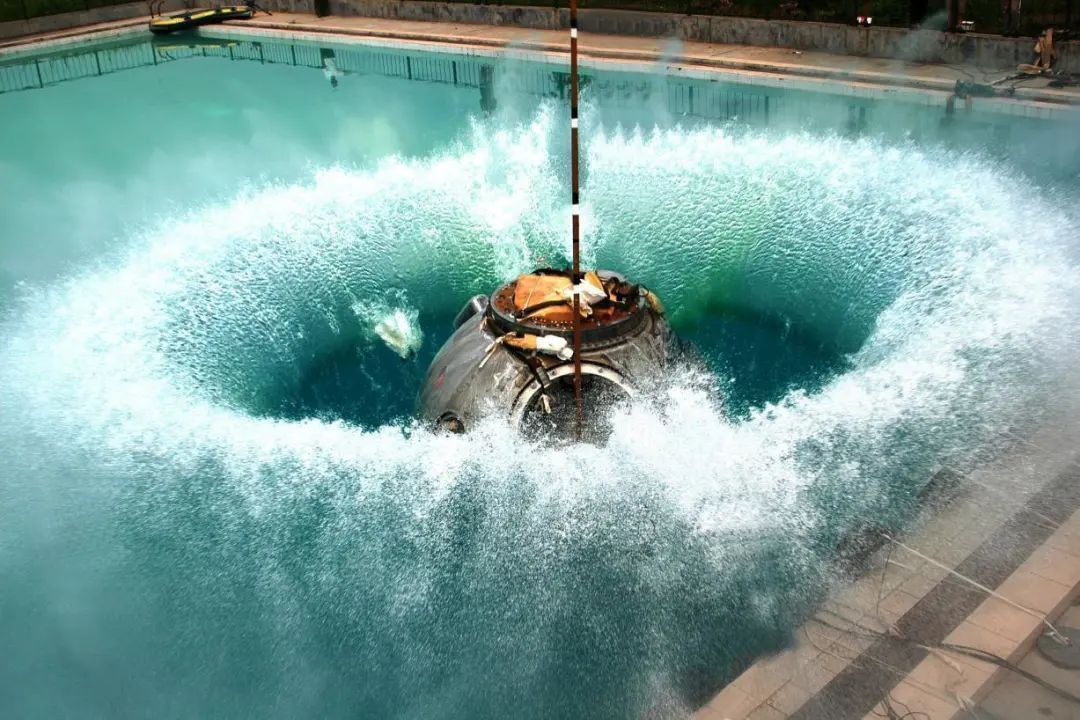 2005年,神舟系列飞船任务返回舱正在进行落水试验,为神舟系列飞船研制收集相关技术数据,并对其改进设计的正确性和可靠性进行验证。张长宇 摄