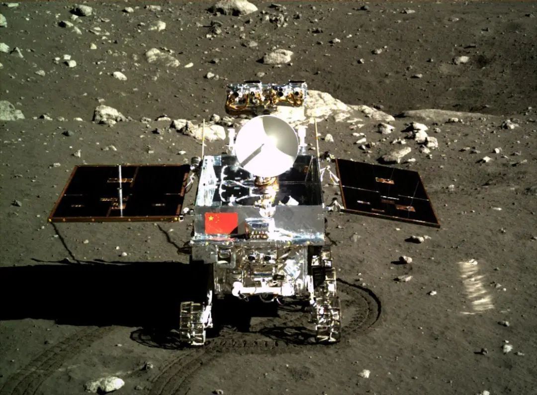 2013年12月15日,嫦娥三号着陆器和玉兔号月球车用各自携带的相机成功实现互相拍照,玉兔号月球车图像惊艳亮相,五星红旗分外夺目,中国国旗首次在地外天体“留影”。探月工程二期取得圆满成功。