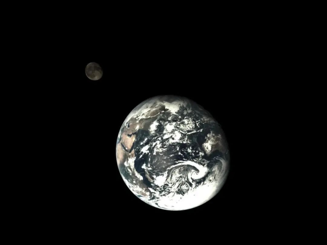 2014年11月10日,中国探月工程再入返回飞行试验器服务舱携带的相机在距离地球54万公里、距离月球92万公里处拍摄的清晰地月合影图像。