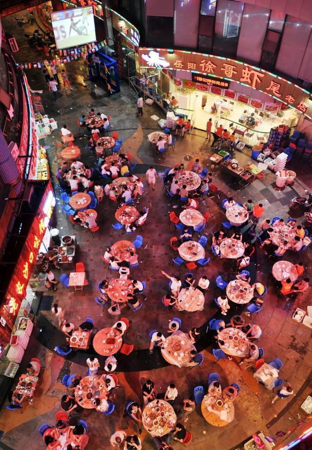 去年夏天,夜里吃小龙虾、喝啤酒看球的长沙人。