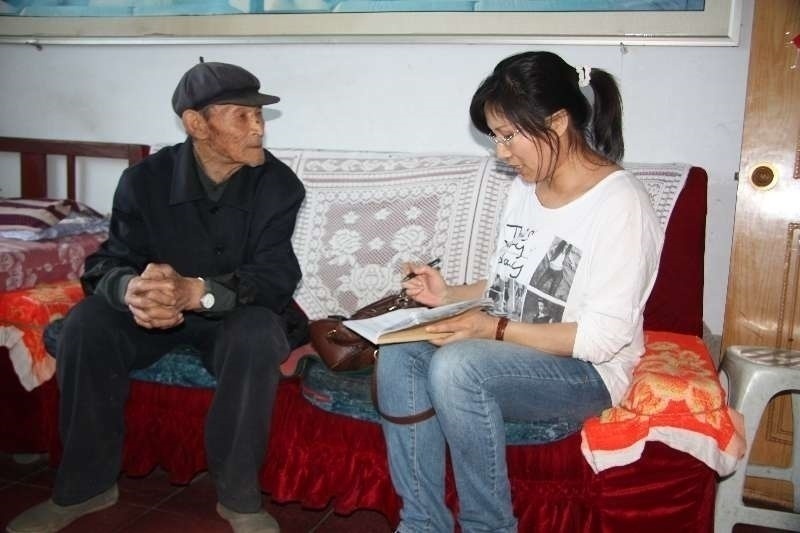 作家杨春风(右一)采访中。