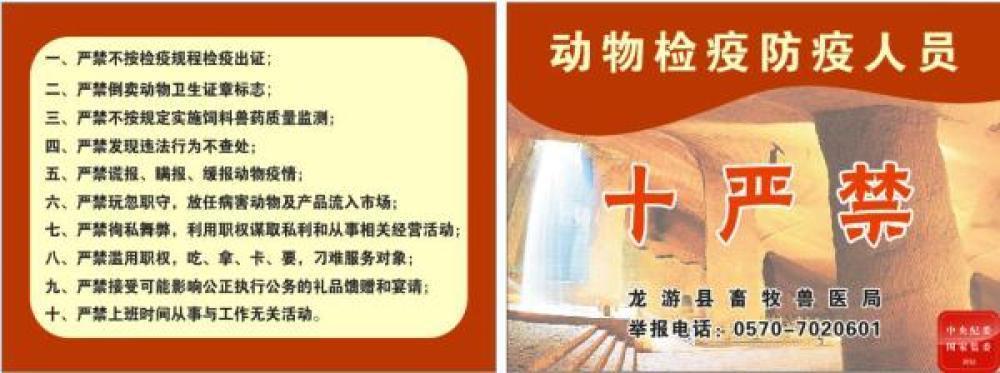 龙游县畜牧兽医局积极整改,制作《动物检疫人员十严禁》口袋书。