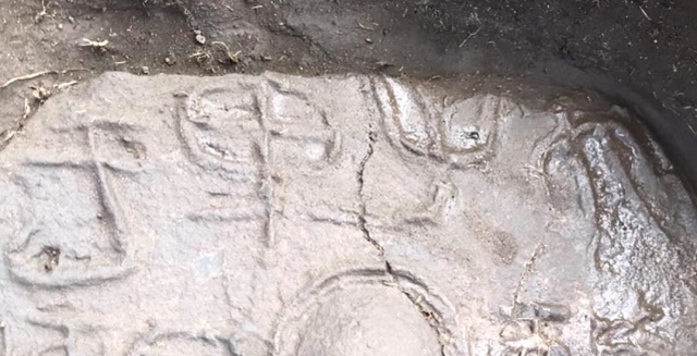 △匈奴首都龙城遗址字刻有“天子单于”字样的残留装饰瓦片(图片来源:蒙古国AMJILT.NEWS新闻网)