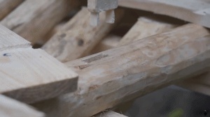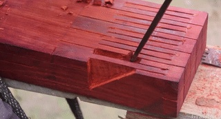 一顿行云流水的操作后,这块木头内部就被分解成了各个部位,但这些部位依然彼此相连。
