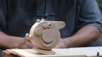 前几年小猪佩奇火的时候,大爷用木头给孙子做了一个