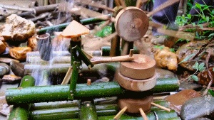 没有电池也没有轴承,大爷用内置的木头机关就能让它动起来。