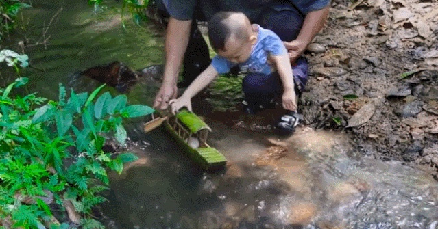 别人家小孩拿小瓶子吹泡泡,大爷直接给孙子做了个木头泡泡机。