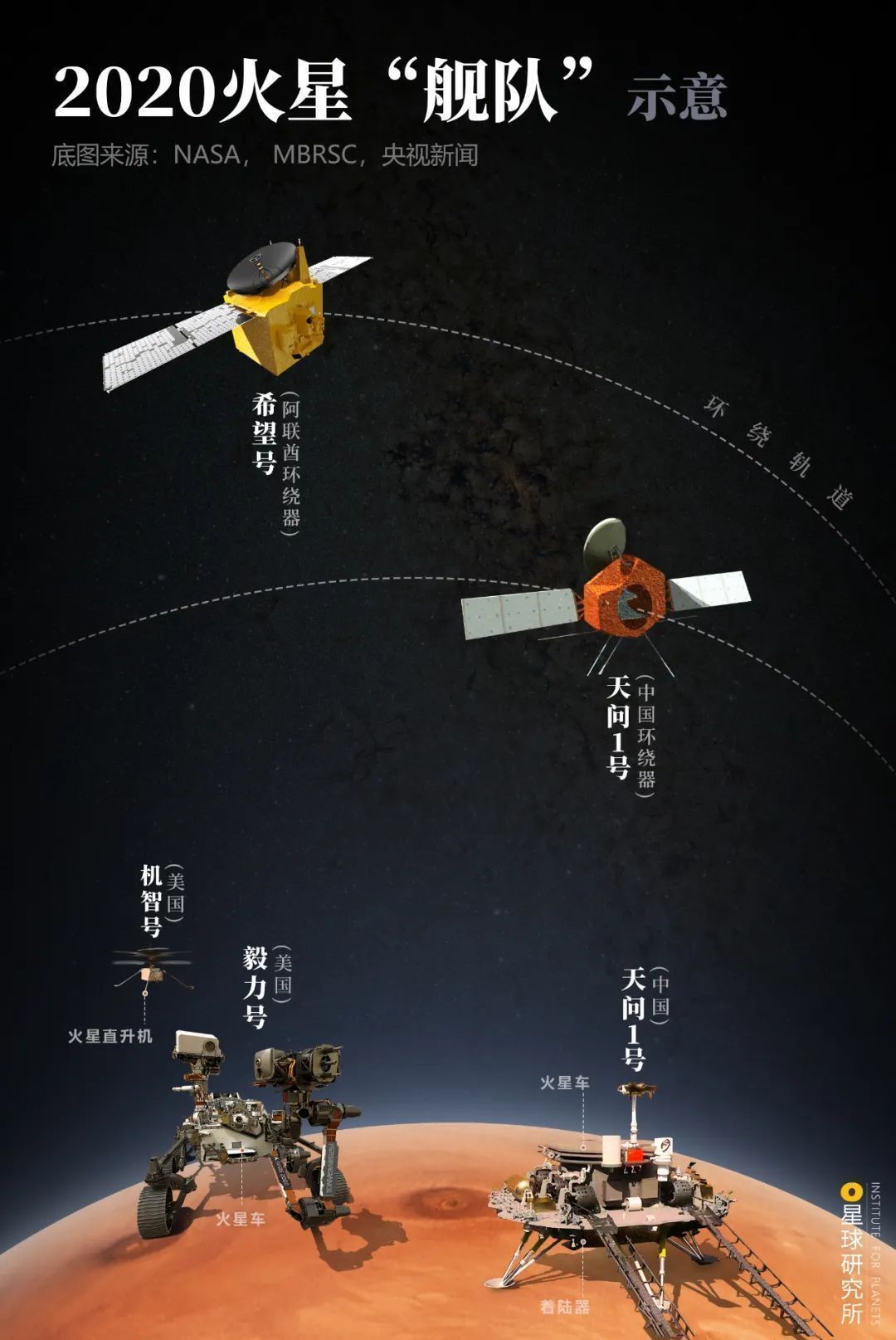 (2020年火星“舰队”,制图@郑伯容/星球研究所)▼