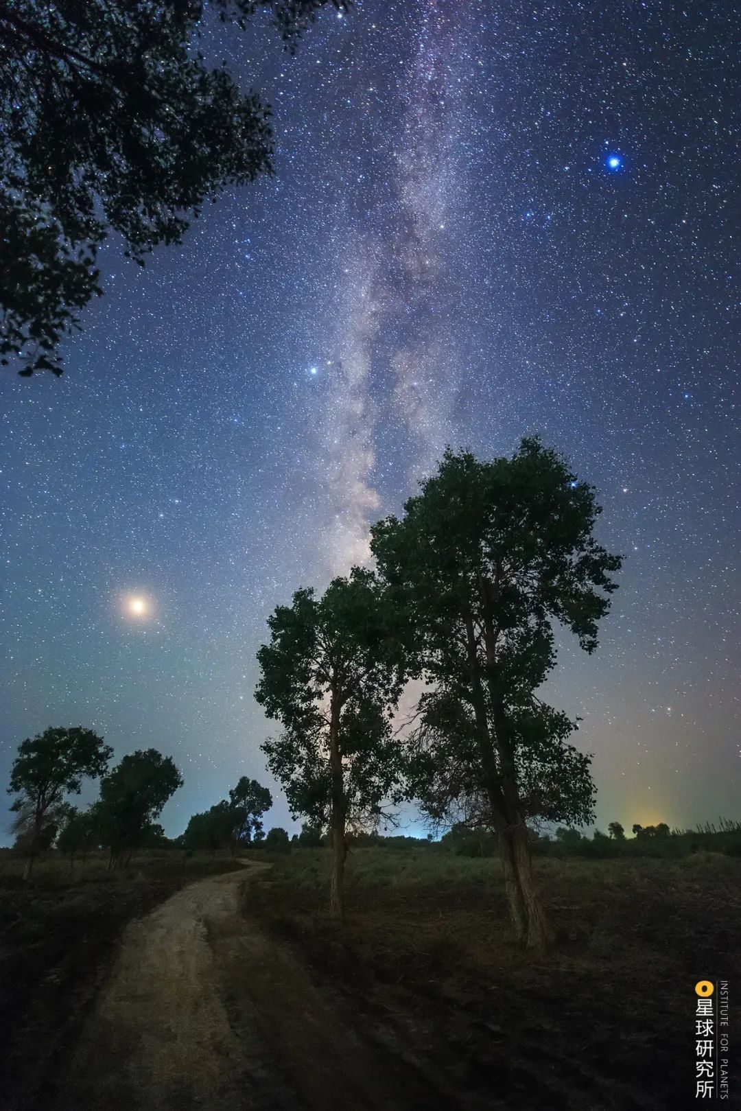(中间偏左下的红色亮星为火星,中间偏右上的蓝色亮星为织女星,摄影师@戴建峰)▼