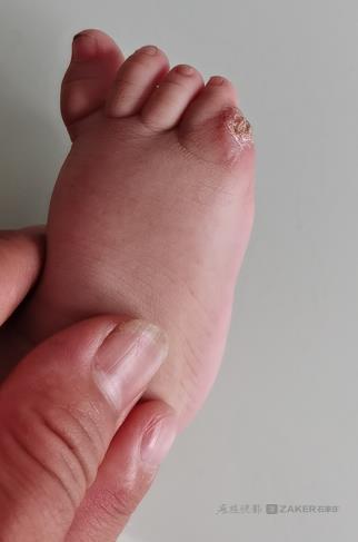 刘先生表示,在没有进行风险提示的情况下,孙医生就对孩子进行了手术。术后家人惊讶地发现孩子小脚趾全部被切掉了,右脚只剩下了四个脚趾头。" 孙医生说他弄错了,就这样缝上吧!家人没同意,要求转院。" 刘先生说,孩子随即被转到邯郸市手外医院进行断肢再接手术,但是没有成活,目前已脱落,孩子右脚只剩下了四个脚趾头。在邯郸住院期间,小航还被送到省三院进行检查,但为时已晚。眼看着孩子小脚趾结痂,无奈之下,7 月 4 日,刘先生只好含泪为孩子办理了出院手续。