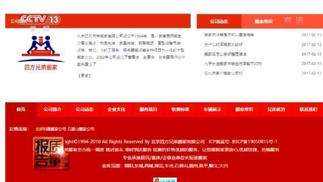 北京市场监管局朝阳分局执法大队 王延:我们执法人员就联系了这家公司的法务代表,法务代表也向我们陈诉了四方兄弟(搬家公司)在网站挂的照片,实际上是他们公司在2010年拍摄的并上传到网站上的。