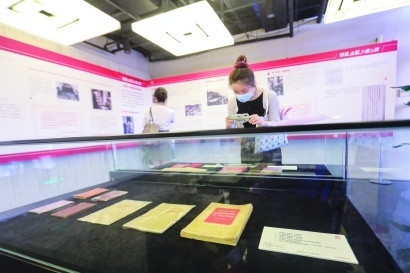 《根基血脉·力量之源——党的群众路线百年历程图片史料展》在中共四大纪念馆举行。图为观众正在仔细观看展览。 本报记者叶辰亮摄
