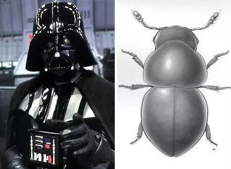 达斯·维德(Darth Vader)是电影《星球大战》(Star Wars)的角色。因为他的一身装束与一种学名为Agathidiumvaderi的新发现物种甲虫非常相似,两者都有宽广发亮的头部,眼睛也非常相似,所以达斯·维德被用作新物种的名字。