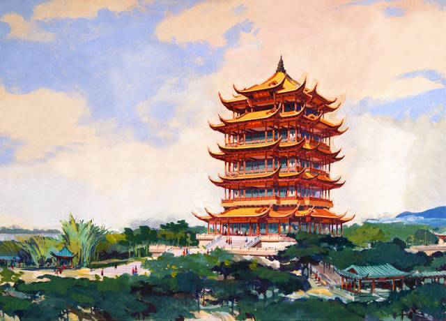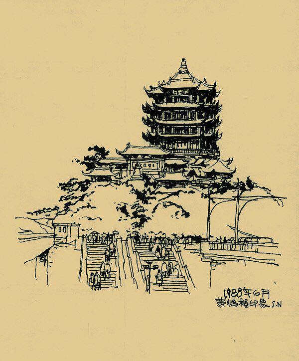 这时,向欣然所在的中南建筑设计院,有一位老先生的方案,比较受领导们的赏识。他设计的黄鹤楼是五层楼,玻璃幕墙式的,外面加些阳台,上面盖一个中国式的大屋顶,有明代黄鹤楼特色,在所有方案中脱颖而出。于是,院里成立了攻关小组,一共四人,其中便有向欣然。向欣然承担的工作,除了替老先生画效果图,还要在这个方案的基础上做一个备选的方案,以增加中选的保险系数。到了后来,向欣然根据各方意见修改多次的备选方案更受欢迎,老先生也退出了小组。