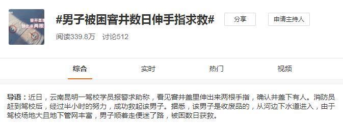 一名男子被困窨井数日伸手指求救事件