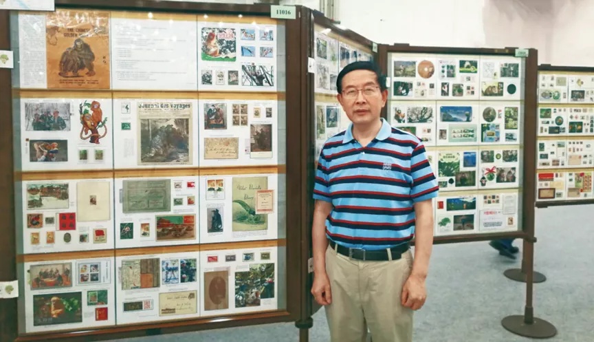 2019 年,薛康在世界邮展个人作品展区现场。