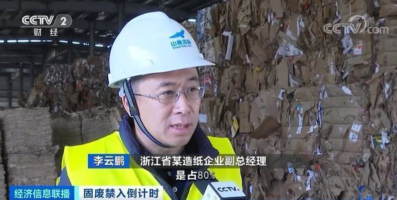 浙江省某造纸企业副总经理李云鹏:现在进口废纸占比不到20%,国内废纸的比例由原来的百分之十几,已经上到现在80%多了。