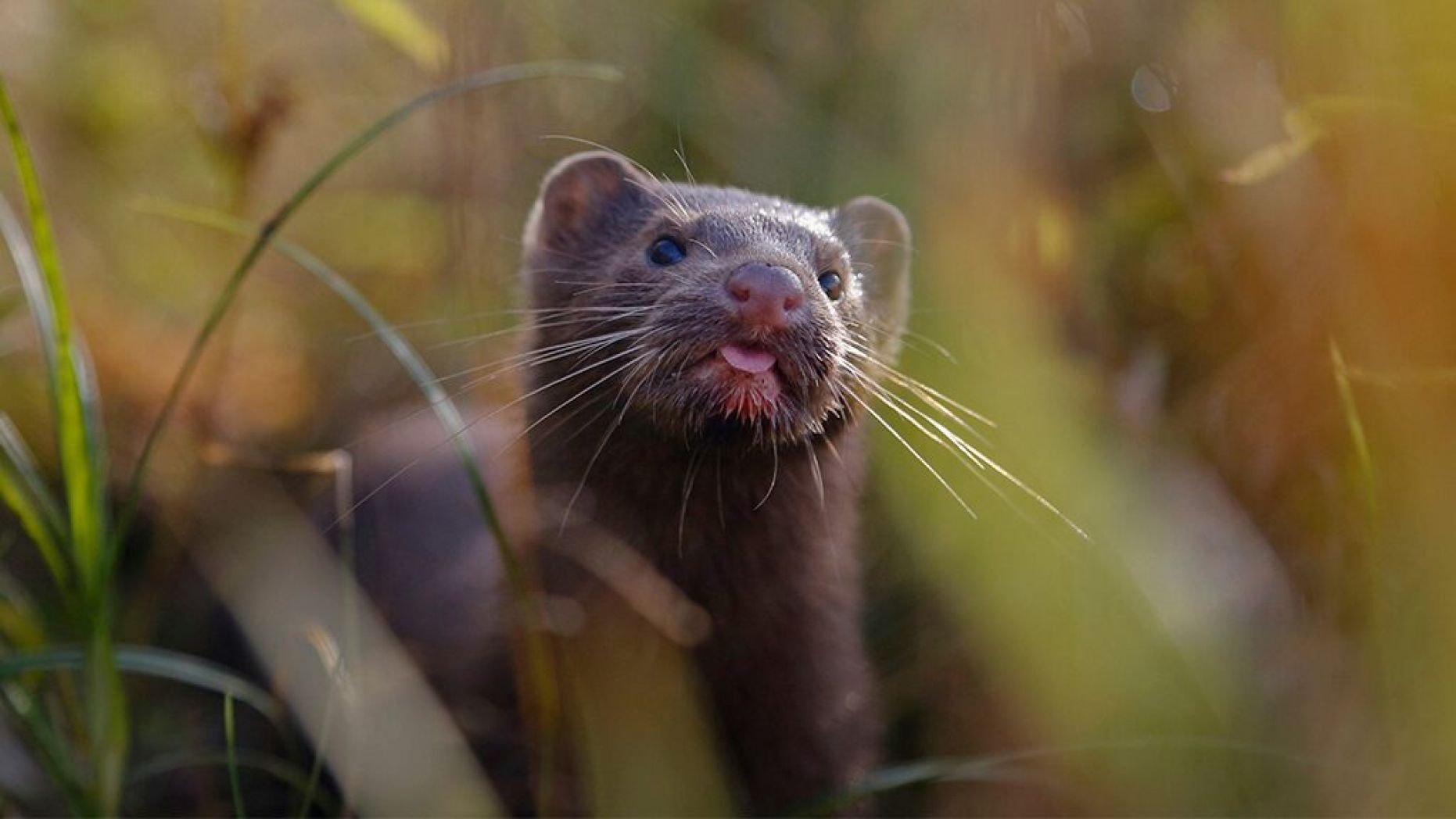 白俄罗斯明斯克西北部河畔一只水貂。