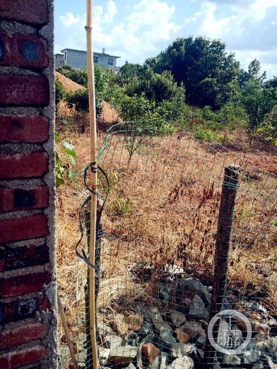 8月19日,康家屋后的铁丝网,警方介绍曾春亮就是从这里进入康家造成2死1重伤的凶案。摄影/上游新闻记者 肖鹏