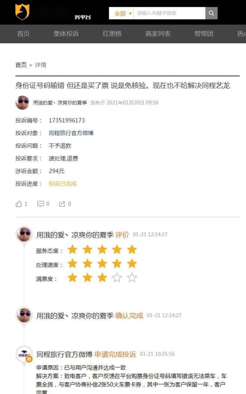 1月31日,同程艺龙独家回应封面新闻,称黄女士选择的是平台免核验方式出票,绕过了12306由线下代售点出票,也就跳过了实名认证环节,直接手动输入证件号码。