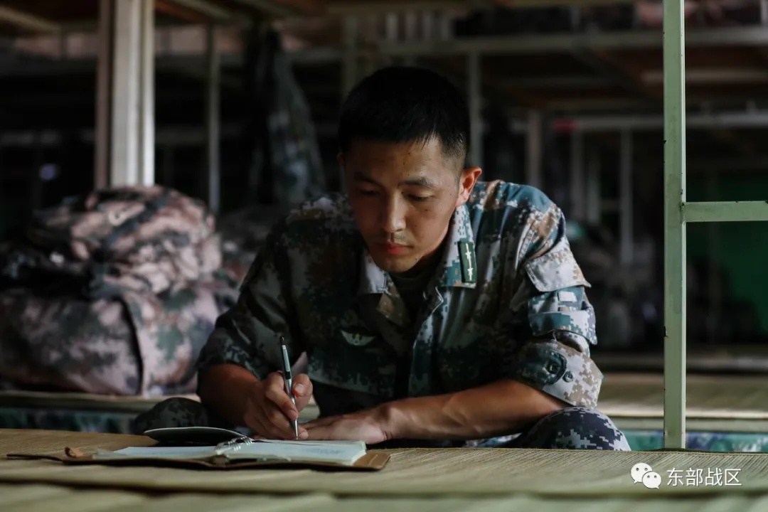 思想政治教育不能落下,一回到驻训点,冒小驰就加油充电。