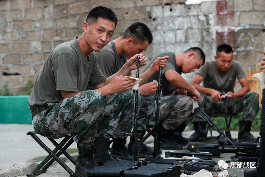 冒小驰与战友们一起维护保养轻武器。