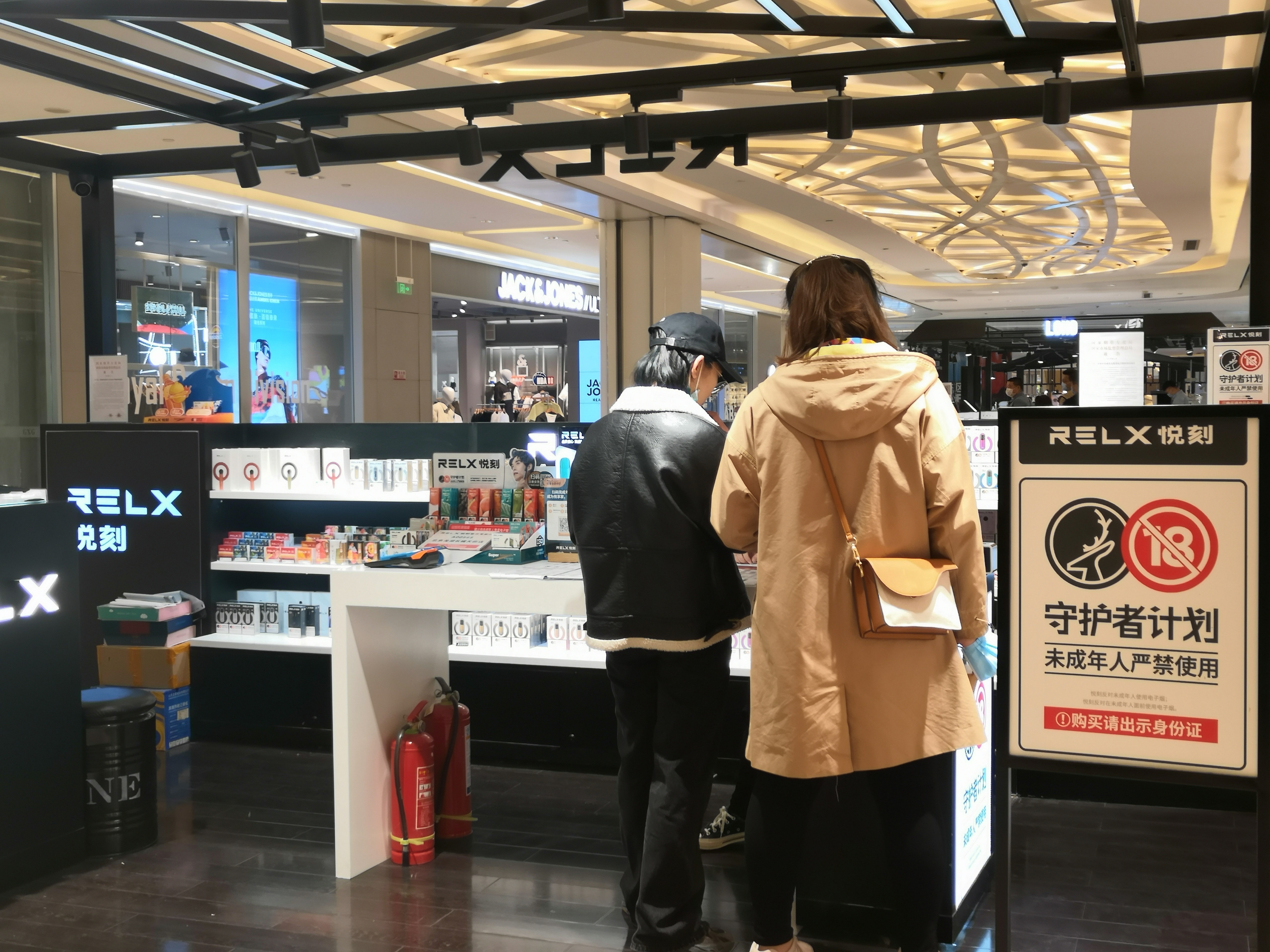 位于丰台区的西铁营万达广场地下一层,是主打青春时尚的潮流商业区,分布着多家电子产品和时尚品牌快闪店。这其中就有三家电子烟商店,售卖悦刻、雪加、柚子等多个品牌的电子烟。