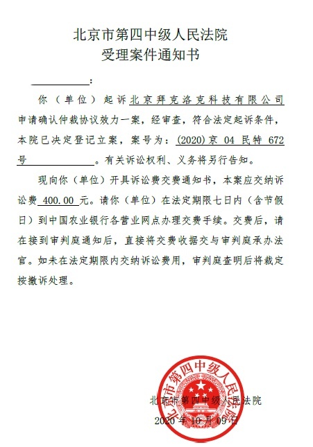 小孙向北京市第四中级人民法院提出申请,请法院确认小黄车仲裁协议无效。