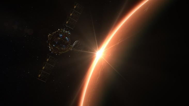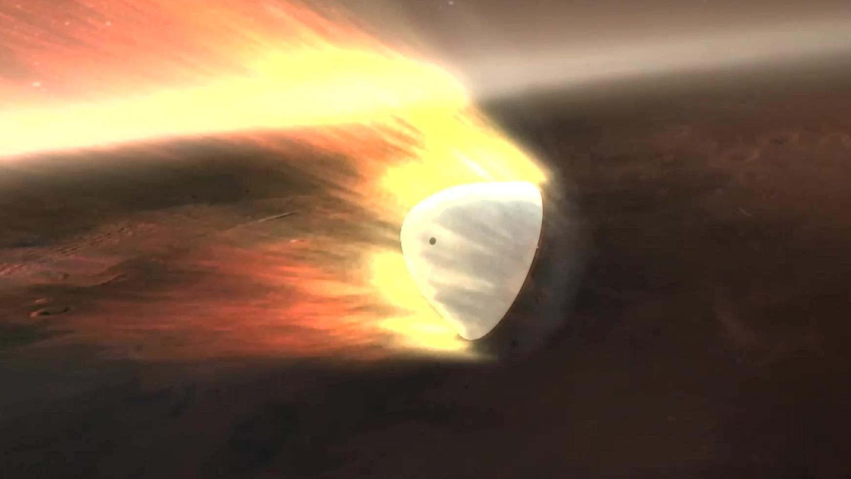 “天问一号”着陆巡视器进入火星大气效果图(图源:航天科技集团五院)