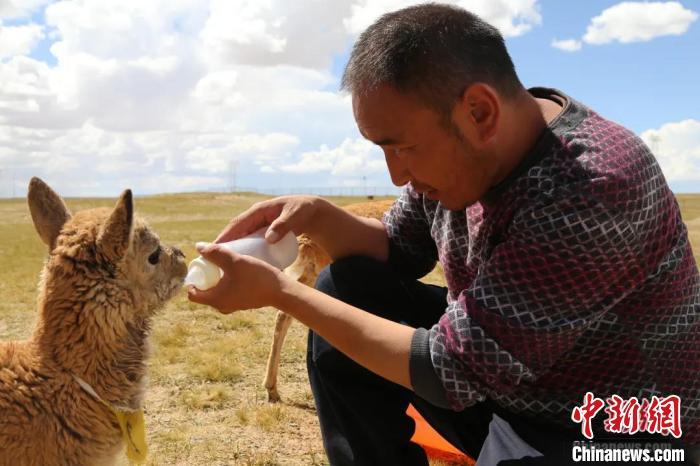 图为救护站的工作人员喂小藏羚羊。 赵凛松 摄