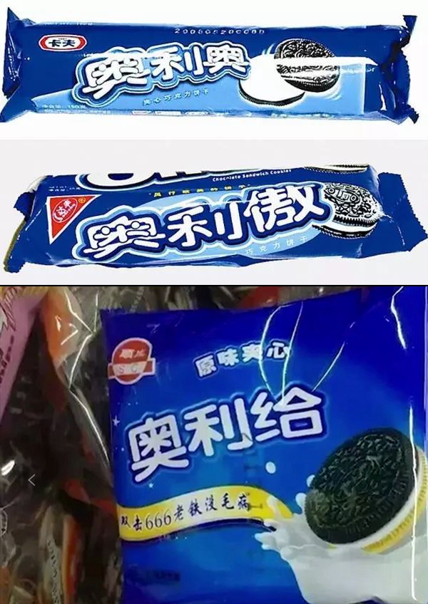 一种是抢注和某些品牌食品类似的商标,通常是以高度相似的包装,迷惑性较强的名称、广告词等吸引消费者,在食品名上使用文字游戏或模仿品牌食品,但其质量和风味与“正品”相差甚远。如将“大白兔”变成“小白兔”,“康师傅”换成“康帅博”冒充升级版等。