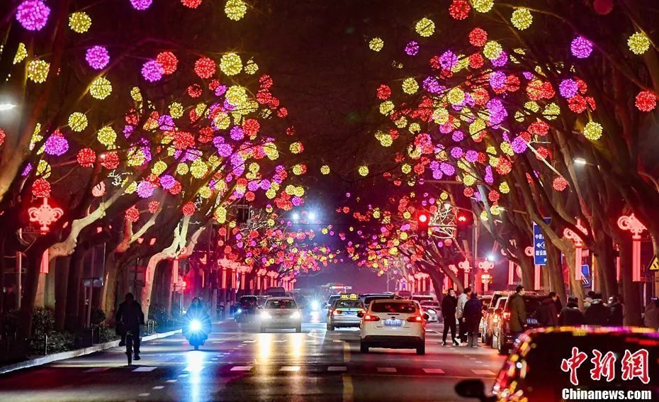 资料图:图为河南郑州主要街道装扮上新年彩灯。图片来源:视觉中国