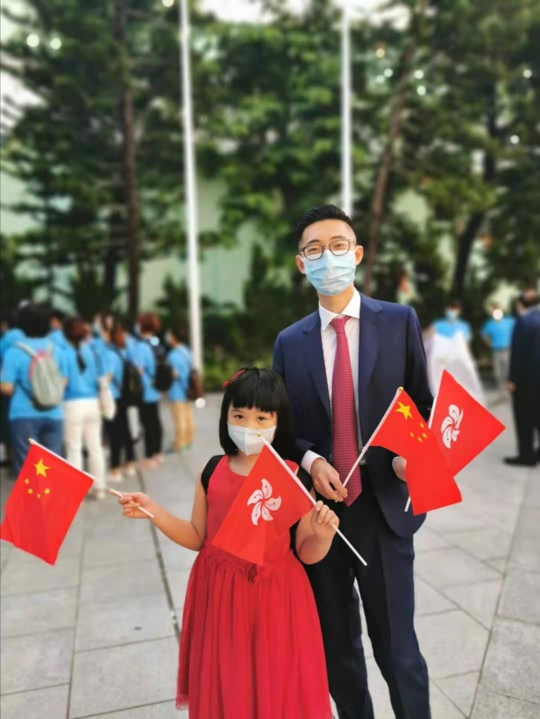 其实,每年“七一”回归日和国庆日,新社联北区地委都会举办庆祝活动。而我也都会在天还没亮就起床,穿上最喜欢的衣服,捆上最美丽的发带,配上最合衬的鞋子,和家人一起参加升旗仪式,在国旗下留下一张珍贵的照片。只是在2019年,这样平静美好的生活被打破了。当时,我在电视上看到有人把国旗丢进海里,还看到很多人跑到国外说香港和祖国的坏话,在一些外国人的支持下来破坏香港。我生气地问爸爸:难道我们就没有办法阻止他们吗?爸爸说,香港是祖国不可分割的一部分,相信祖国一定会帮助我们的。