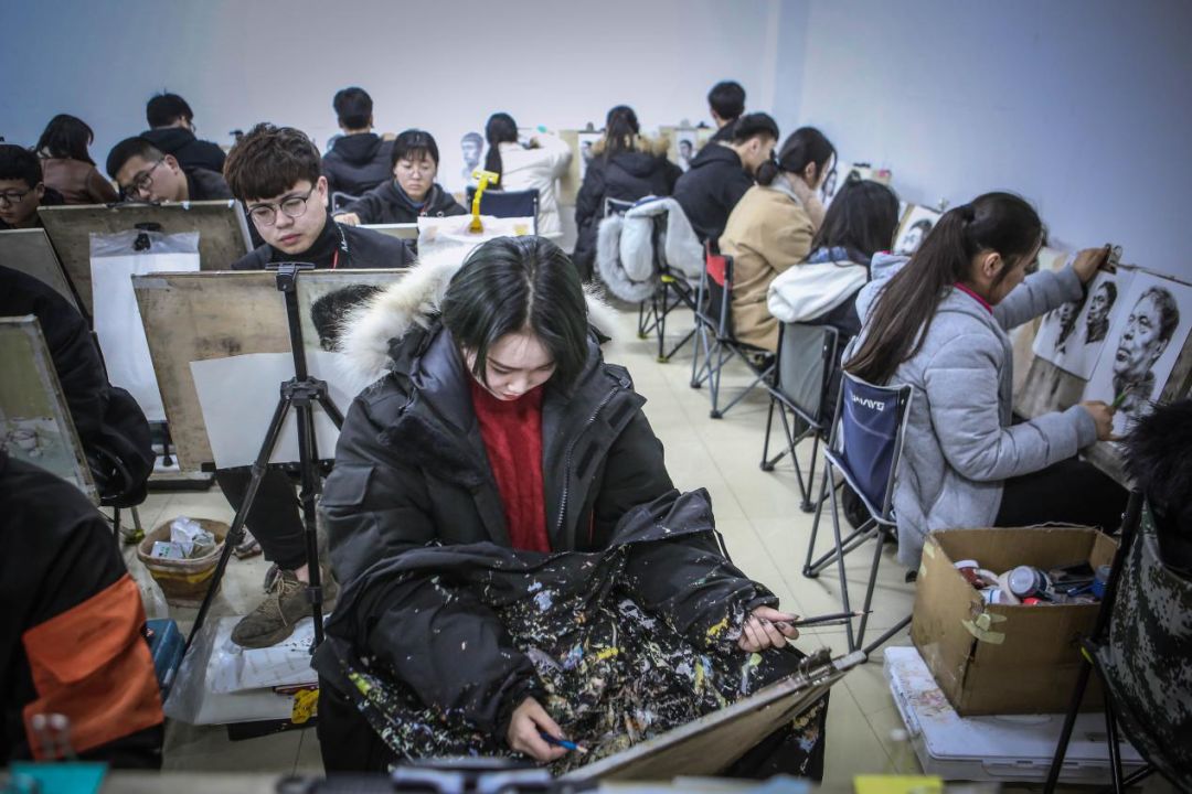 肩上背着几乎覆盖了整个人的画板,一手拎着颜料箱,一手拎着折叠凳,瘦小的身躯几乎被这些“家伙事儿”压垮,这是每年这时候我们常在路上见到的美术生的模样。每年1月到3月,对艺考生来说辛苦而漫长,他们要经历第一次“高考”——艺考。