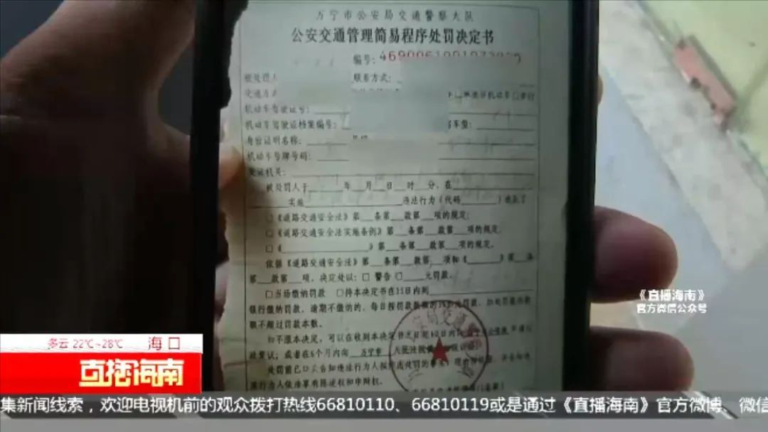 海口市公安局交警支队秀英大队五中队 民警 郑浩然:这辆车是把这个广告贴在它这个后视玻璃上,就是你在驾驶的时候会影响你看后边的视线,影响驾驶安全。只要有玻璃的是绝对不可以贴的,如果是封闭式货车它是可以贴的,但是不能超过三分之一。