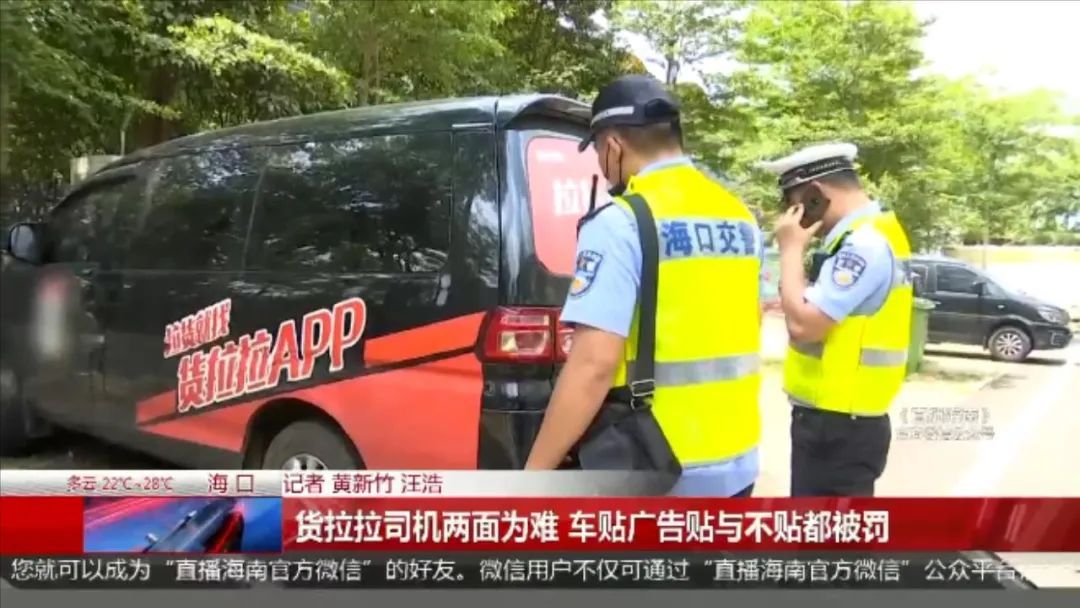 海口的王师傅是一名货拉拉司机。按照公司要求,司机需要在车身粘贴货拉拉的标语和二维码等广告。可实际情况是,按公司要求贴了车贴广告,会被交警罚款;不贴,又会被公司罚款。于是,一直以来,王师傅都不知该如何是好!